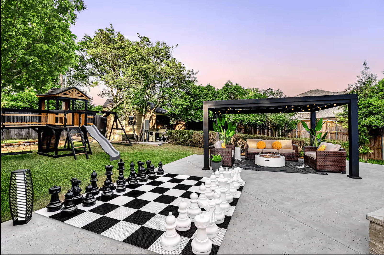 The house Tulsa picked is the exemplar of Zillennial group vacation bait—every nook and cranny an Instagram opportunity—with a pool, a putt-putt course, an oversized chess set, an arcade, a karaoke room, and a fire pit.